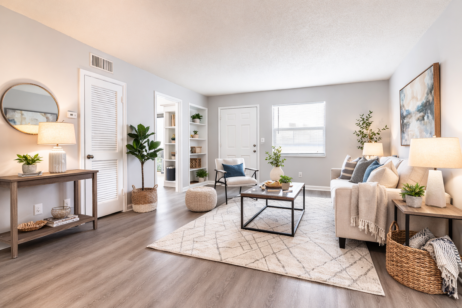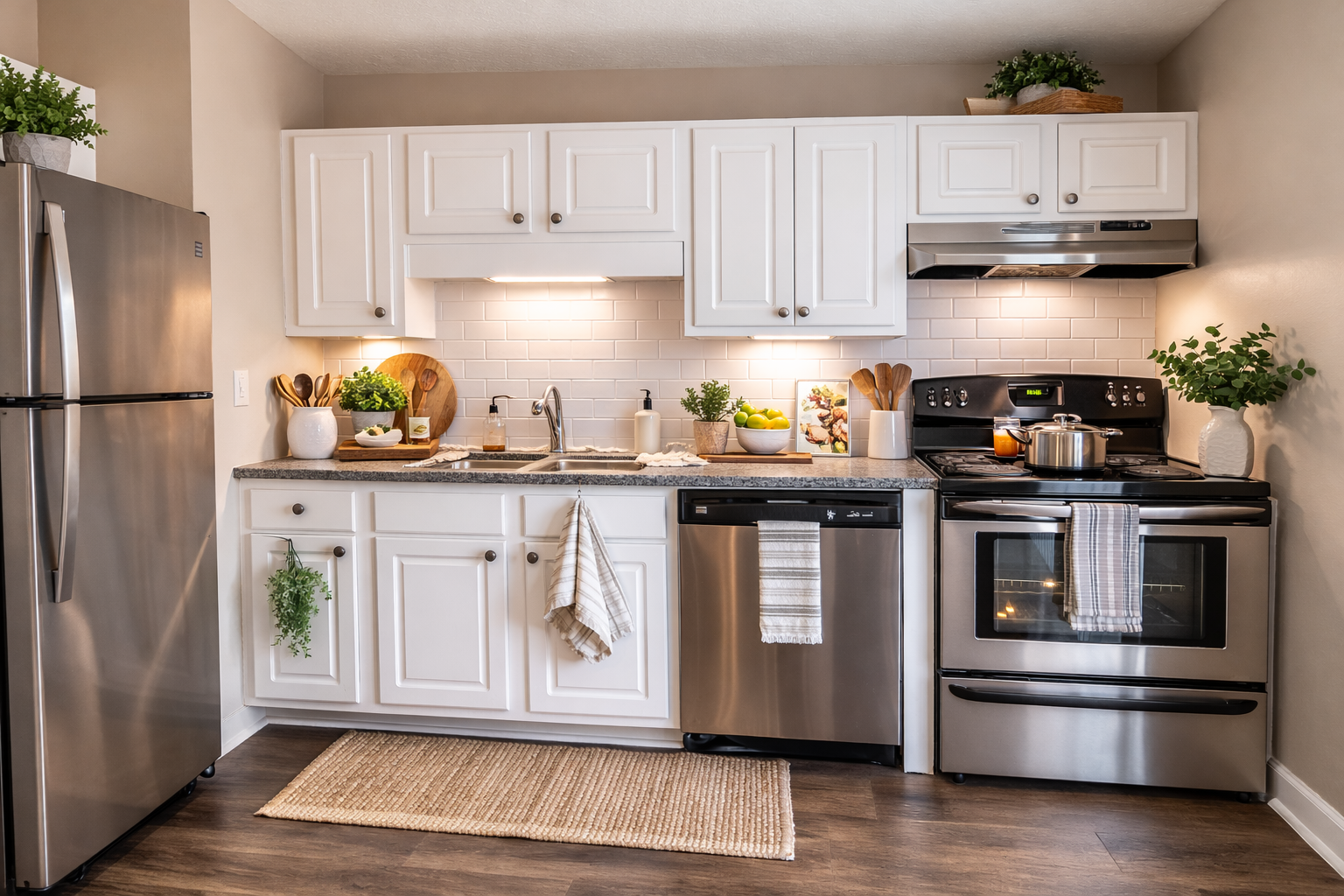 Discover 1-, 2-, and 3-bedroom apartments ranging from 636 to 1,254 sq ft. Each home features modern kitchens with granite countertops, bright living spaces, and spacious bedrooms. Water, trash, and pest control are included in every floor plan.