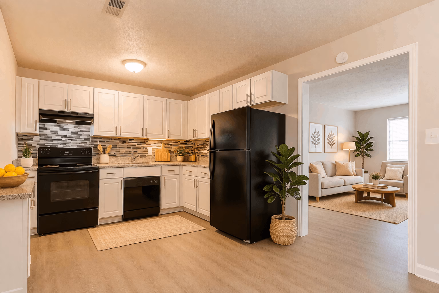 Comfortable living with a spacious kitchen, bright living area, and a well-sized bedroom designed for everyday ease.